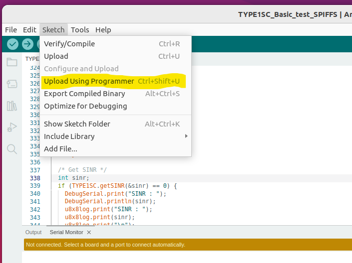 4. Sketch → Upload Using Programmer로 아두이노 부트로더를 업로드합니다.