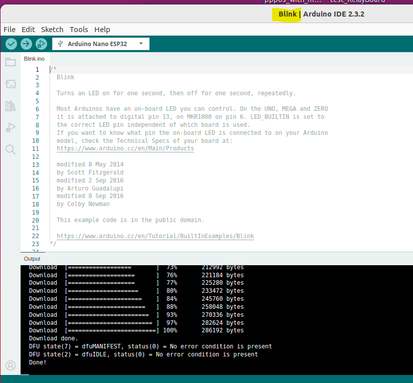 이제 빌드 후 Nano ESP32 보드에 업로드하겠습니다.