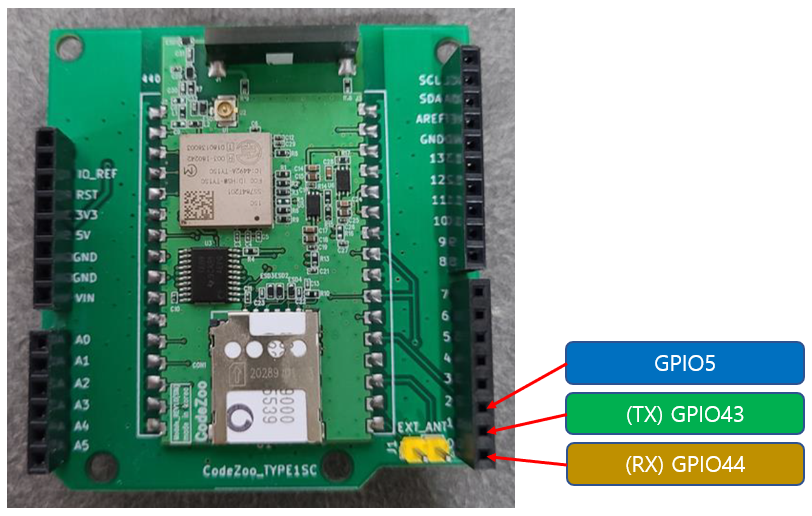 LTE CATM1 모뎀과 Nano ESP32 보드가 실제 연결된 라인은 아래와 같습니다.