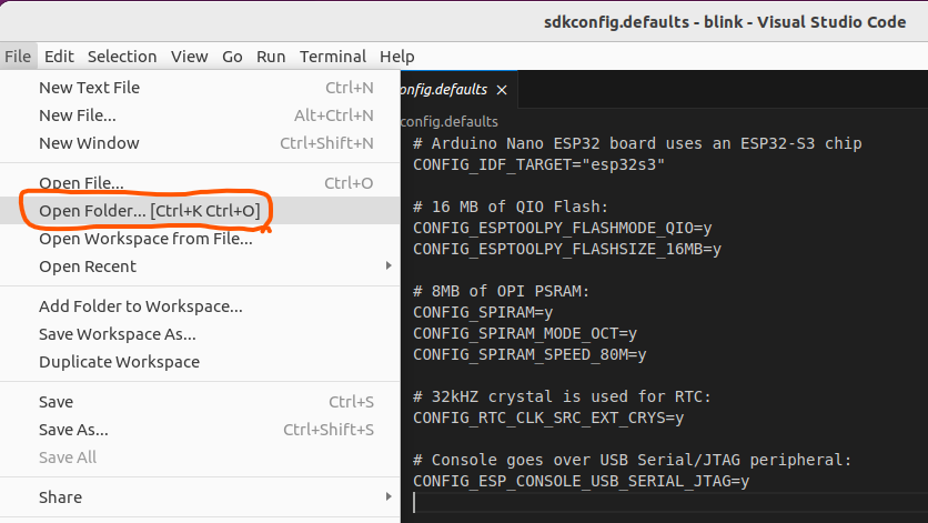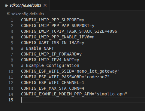 EXPLORER 아래 sdkconfig.defaults 파일을 클릭합니다.