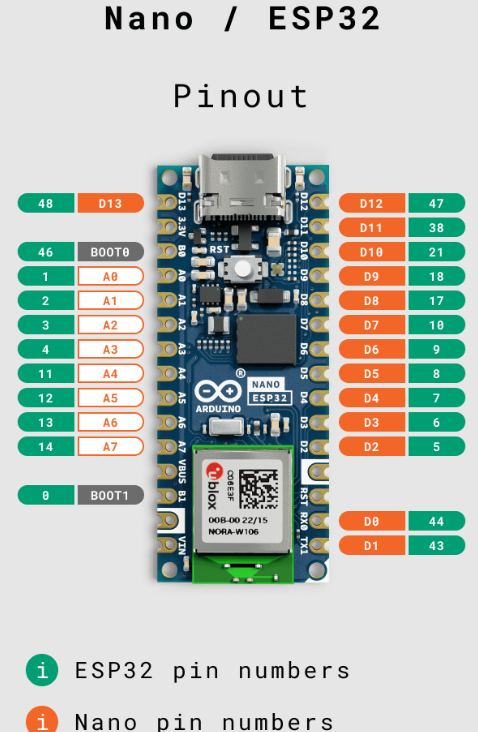우선, ESP-IDF는 아두이노와 다르게 GPIO번호를 사용하기 때문에 아래 Pinout의 내용을 숙지할 필요가 있습니다.