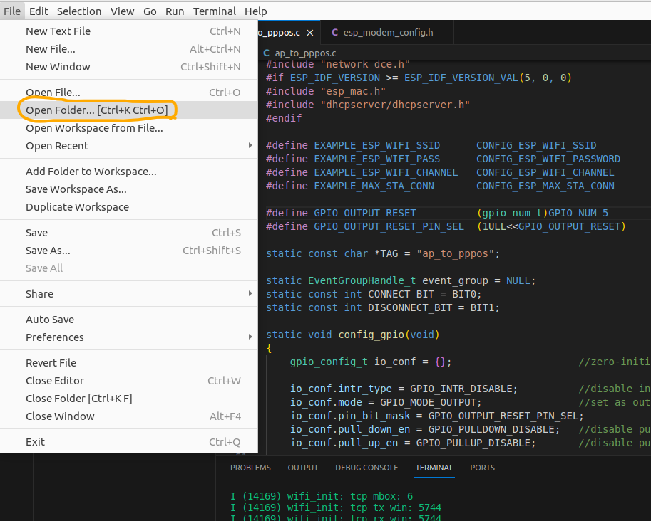 VS Code를 실행하고 Firebase-idf 폴더를 오픈합니다.