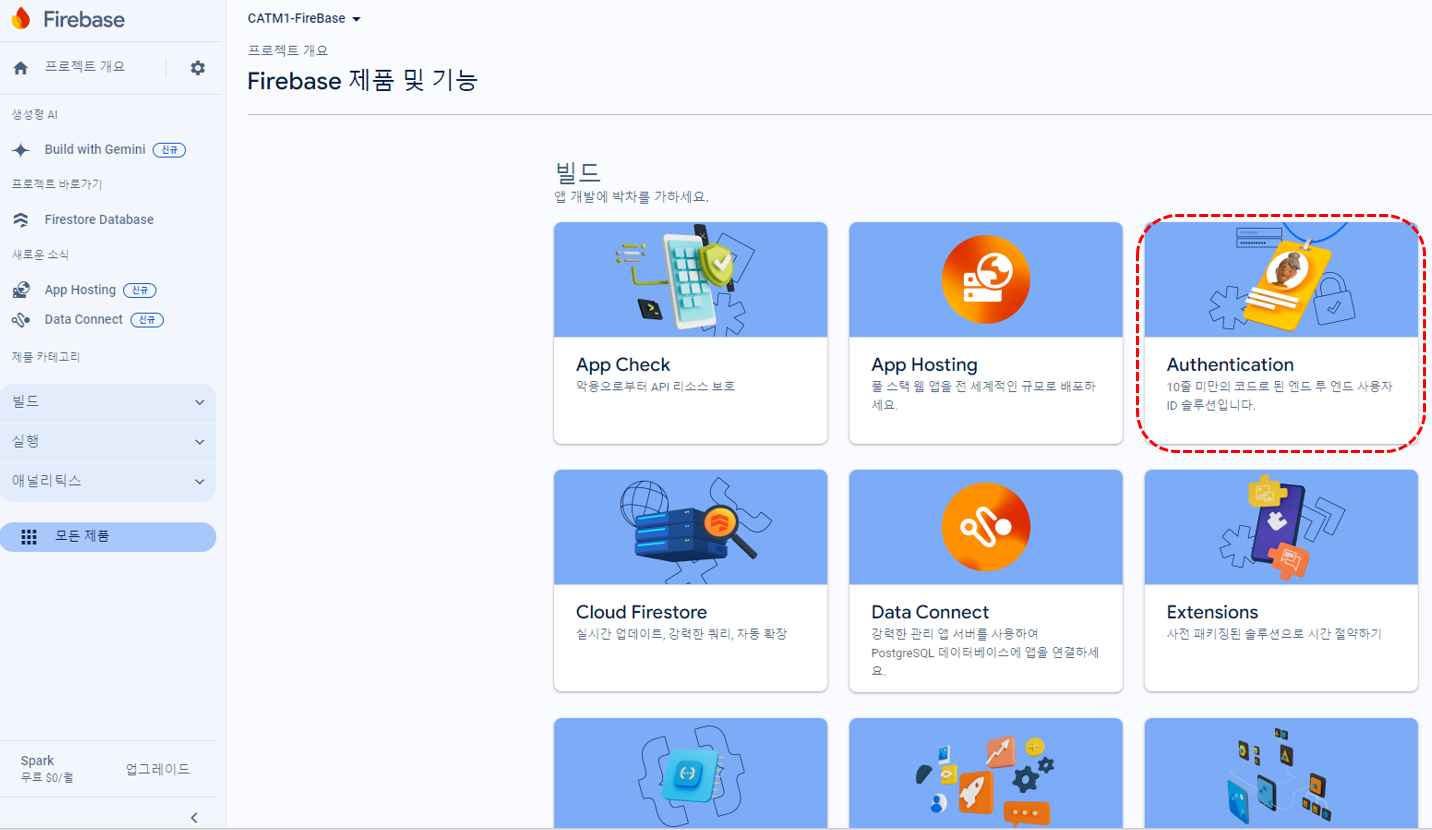 2. 프로젝트를 만듭니다. (CATM1-FireBase로 만들었습니다.)