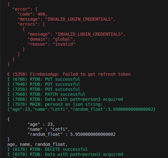 이제 펌웨어를 업로드합니다. 로그를 확인해 보면 Firebase RealTime Database에 접속해서 데이터를 올리고 삭제한 내역을 확인할 수 있습니다.