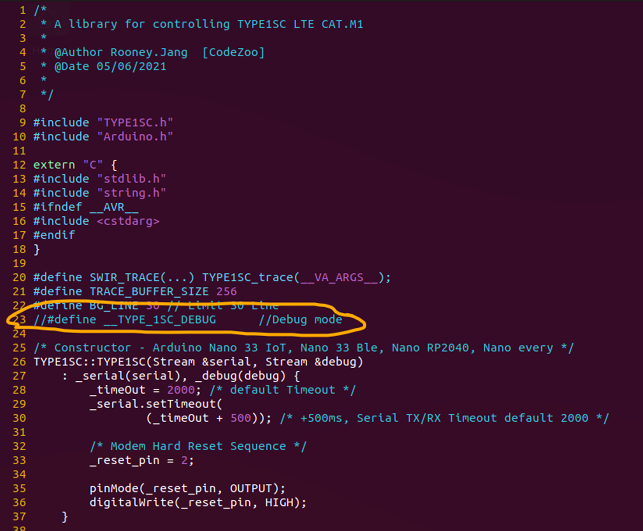 라이브러리 코드는 Arduino/libraries/TYPE1SC/TYPE1SC.cpp 입니다. 에디터를 이용해서 오픈합니다.