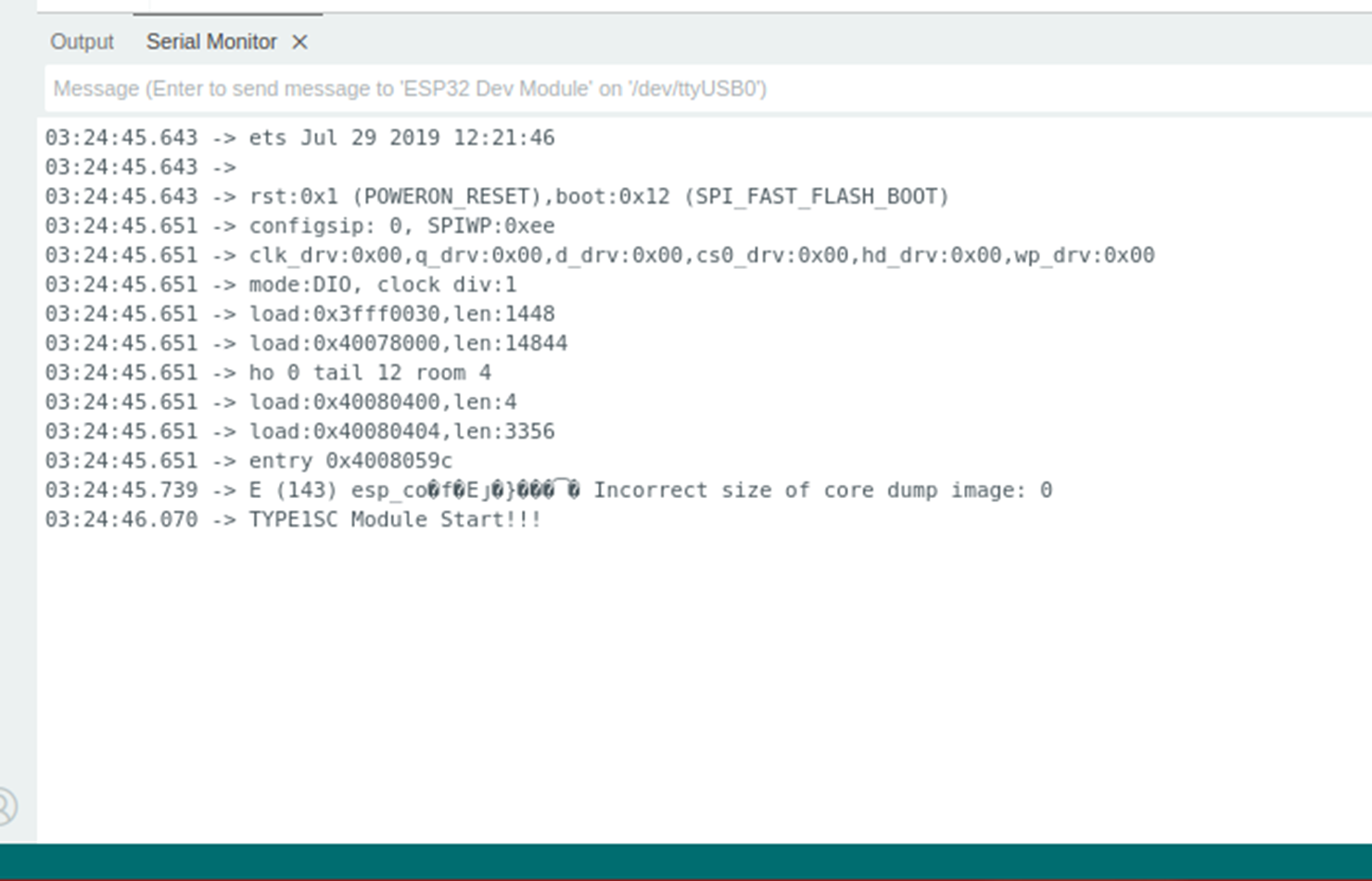 ESP32 IoT 보드 로그화면 (debug ON상태)
