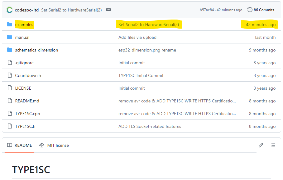 그래서 TYPE1SC 라이브러리의 example을 수정했습니다.