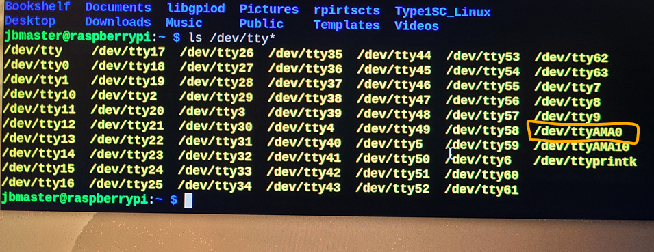 4. 터미널에서 ls /dev/tty* 하면 /dev/ttyAMA0 노드가 만들어진 것을 확인할 수 있습니다.