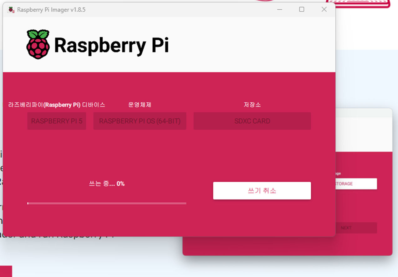 Raspberry Pi Imager v1.8.5 설치 후 라즈베리파이 5용 64비트 Raspberry Pi OS를 설치 했습니다.