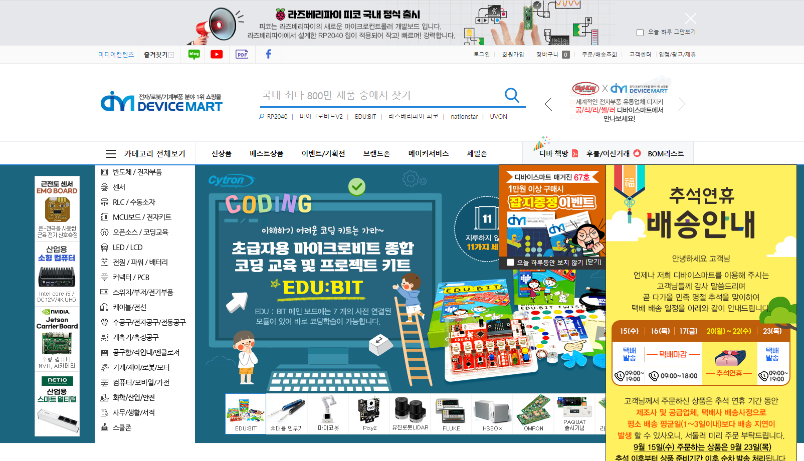 대한민국 전자/로봇/기계부품 분야 1위 쇼핑몰인 디바이스마트(DEVICE MART)에 이번에 제작한