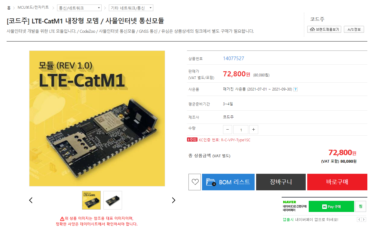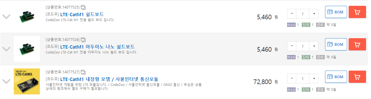 메인화면에서 CATM1 으로 검색해 보시면 아래와 같이 세 가지 품목을 확인하실 수 있습니다.