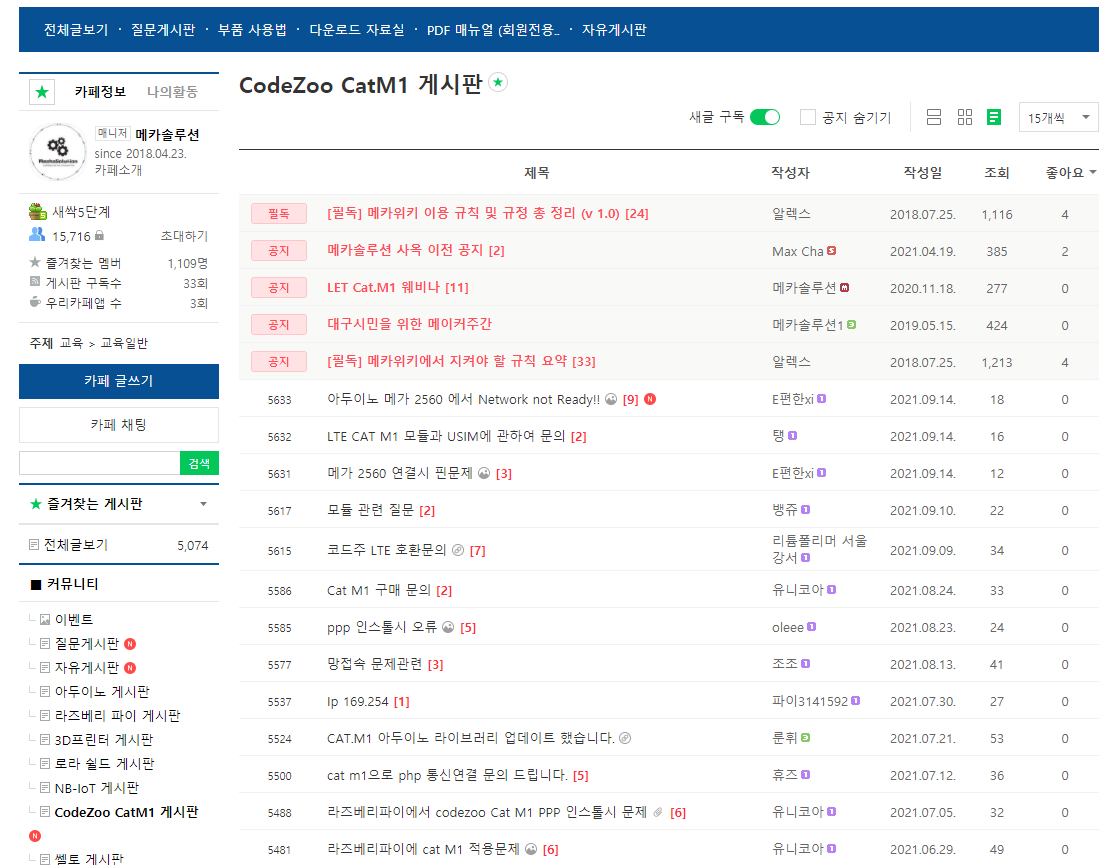 메카솔루션 카페 CatM1 게시판 진심으로 감사드리며 더욱 열심히 노력하는 코드주가 되겠습니다.