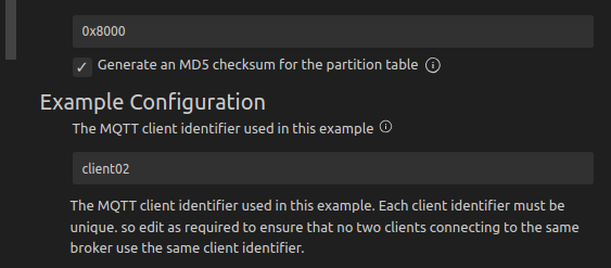 "이 예제에서 사용된 MQTT 클라이언트 식별자입니다. 각 클라이언트 식별자는 고유해야 하므로 동일한 브로커에 연결하는 두 클라이언트가 동일한 클라이언트 식별자를 사용하지 않도록 필요에 따라 편집하세요."