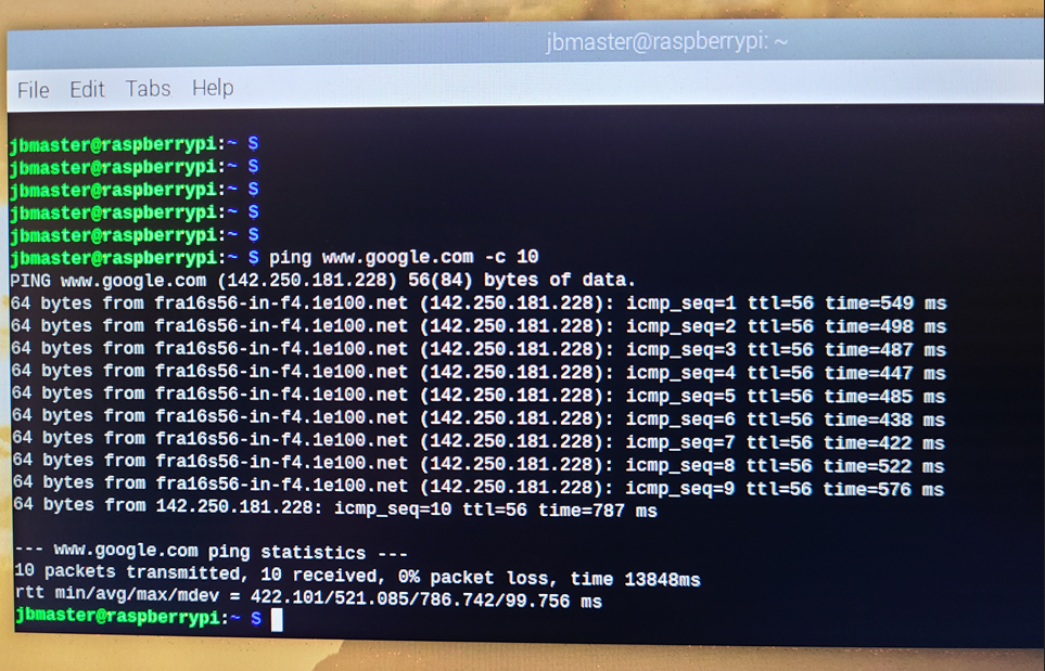 유럽 전용 APN Gateway를 사용했을 때 대기 시간(time)은 아래와 같습니다. (549, 498, 487ms... 576ms)