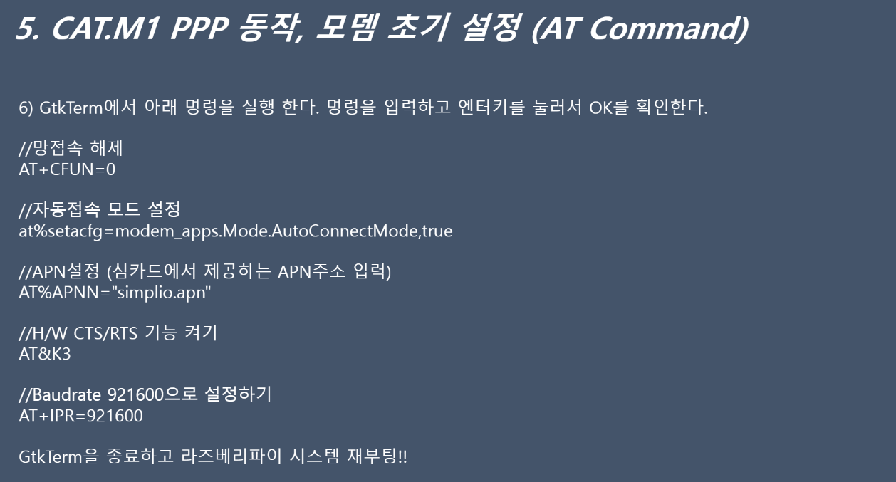 GtkTerm이나 minicom에서 AT커맨드로 모뎀 초기 설정할 때도 AT%APNN="simplio.apac" 으로 입력합니다.