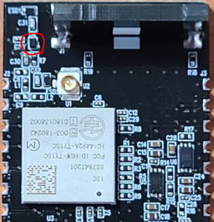 아래 그림과 같이 LTE CATM1 내장형 모뎀 32번핀 (EXT_ANT)에 GPIO 신호로 Pull-up(Logic High)을 인가하면